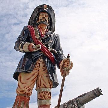 trivia: Scott gooed a picture that was labeled as Silver, but it was actually a statue of Captain Hook from Peter Pan. There was almost no way to tell the two apart, and Scott should have realized his mistake from the hook on the statue's hand, which Silver did not have. Scott credited the players because of his mistake, the second time in Pirates Week. Scott made an additional mistake in the phrasing of the clue, which he indented to say "ironically, this pirate had a large standing" because of Silver missing a leg. He altered the clue before publishing it and didn't realize the error until several days after it was published.