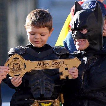 explanation: Scott was a young cancer sufferer who participated in the Make-a-Wish Foundation and wished to be "Batkid," sidekick to Batman. The city of San Francisco staged an elaborate day of activity for Scott to participate in simulated acts of heroism and get a key to the city. The event drew an outpouring of public support and over ten thousand people participated. more…